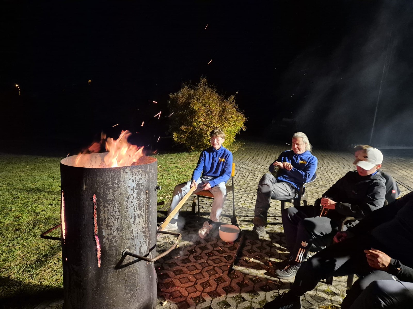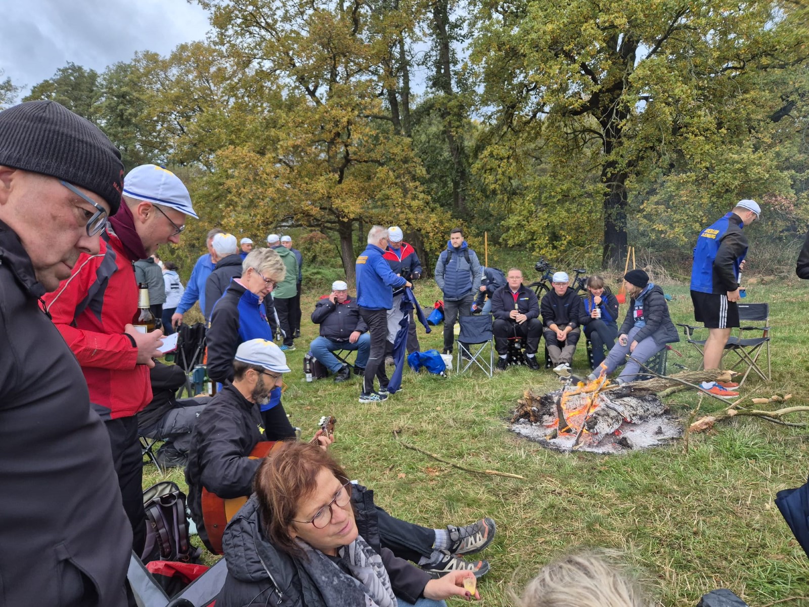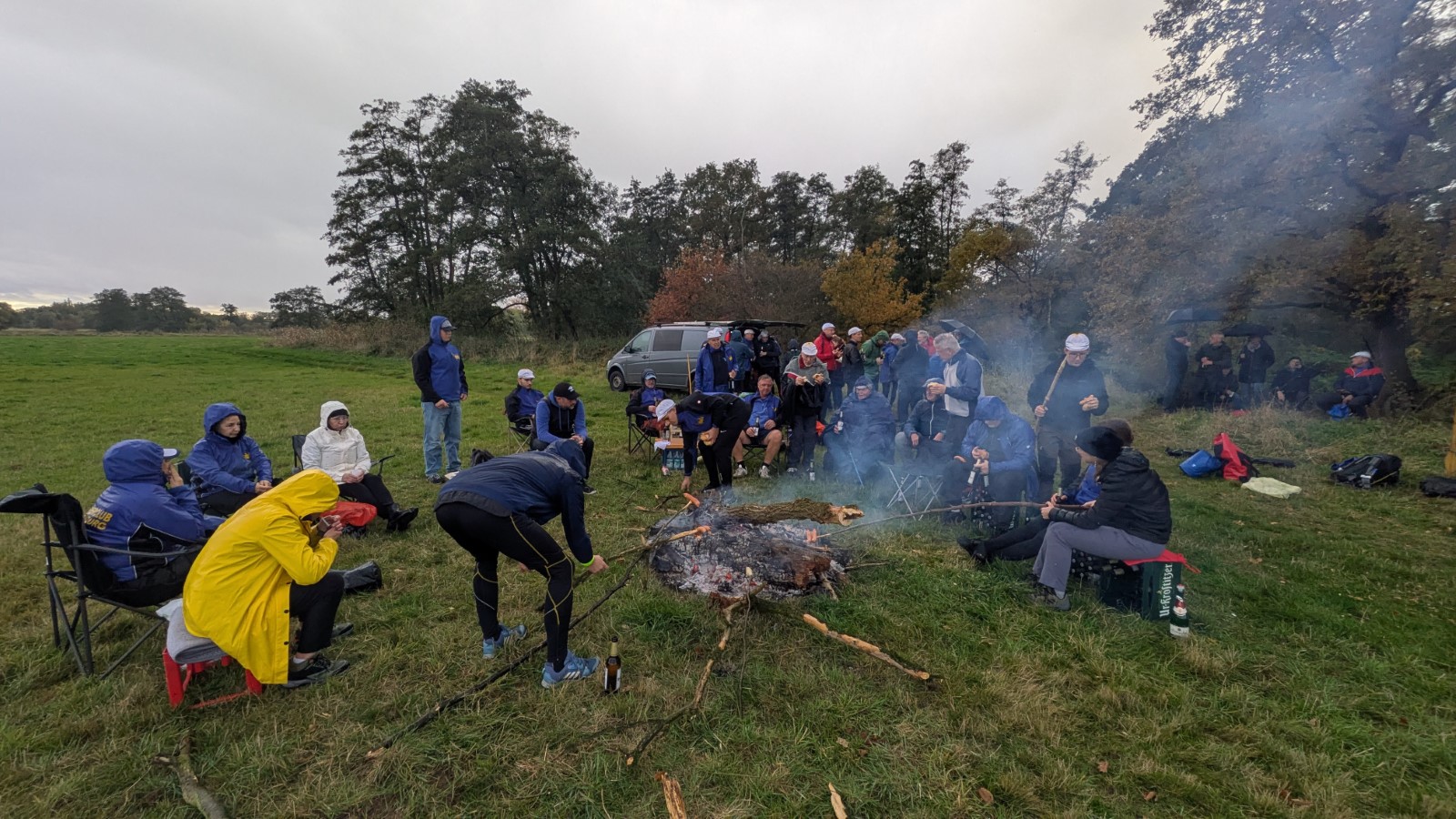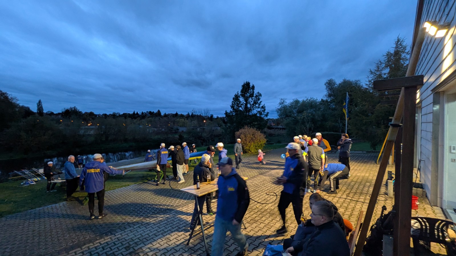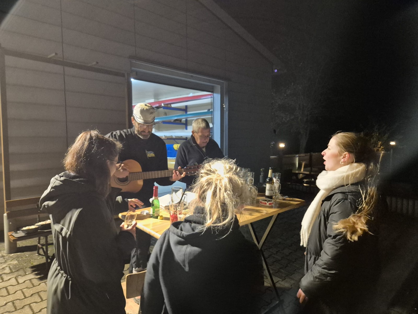Prinzipiell war alles wie immer, am letzten Oktobersamstag 2025. Und wie immer gab es auch ein paar Abweichungen... Nur wenige Kinder und Jugendliche beteiligten sich diesmal am Ergometerwettstreit. Nudeln gab es trotzdem zu Mittag. Bei der Gig-Vierer-Vereinsmeisterschaft fanden sich zwei Mannschaften, um gesteuert vom Matthias gegeneinander anzutreten. Das Rennen machten Niclas, Arne, Colin und Johann mit fünf Sekunden Vorsprung. Die Ansprache der Vorsitzenden Silke Gans begann mit einem Gedenken an unseren allseits geschätzten Clubkameraden Günter Illgen, verstorben erst vor wenigen Tagen nach kurzer Krankheit. Es folgten ein Rückblick auf die vergangene Saison, der Ausblick auf Kommendes, die Begrüßung neuer Mitglieder, verschiedene Ehrungen und der Aufruf, ein letztes Mal für diese Saison „die Ruder zur Hand und die Boote zu Wasser zu lassen“. Das letztere wehte der Wind derweil auch immer mal wieder in leichten Schauern über alle hinweg, die sich auf der Mühlgrabenwiese versammelt hatten. Sie kamen nicht nur auf dem Wasserweg, sondern nach dem Kaffee- und Kuchen-Genuss auch über Land hinzu. Am Feuer, mit mal mehr, mal weniger Regenzeug ließ es sich aber aushalten. Würstchen und Stockbrot fanden genauso wie Getränke und Gesangseinlagen regen Zuspruch. Mit Einbruch der Dämmerung waren alle Boote wieder unter Dach und Fach. Ob gemütlich im Saal oder mehr oder weniger feucht vor der Bootshalle mit Feuertonne, Liedgut und Co... Es wurde noch bis weit in die Nacht hinein gefeiert. Großes Dankeschön an alle für das Engagement dafür!