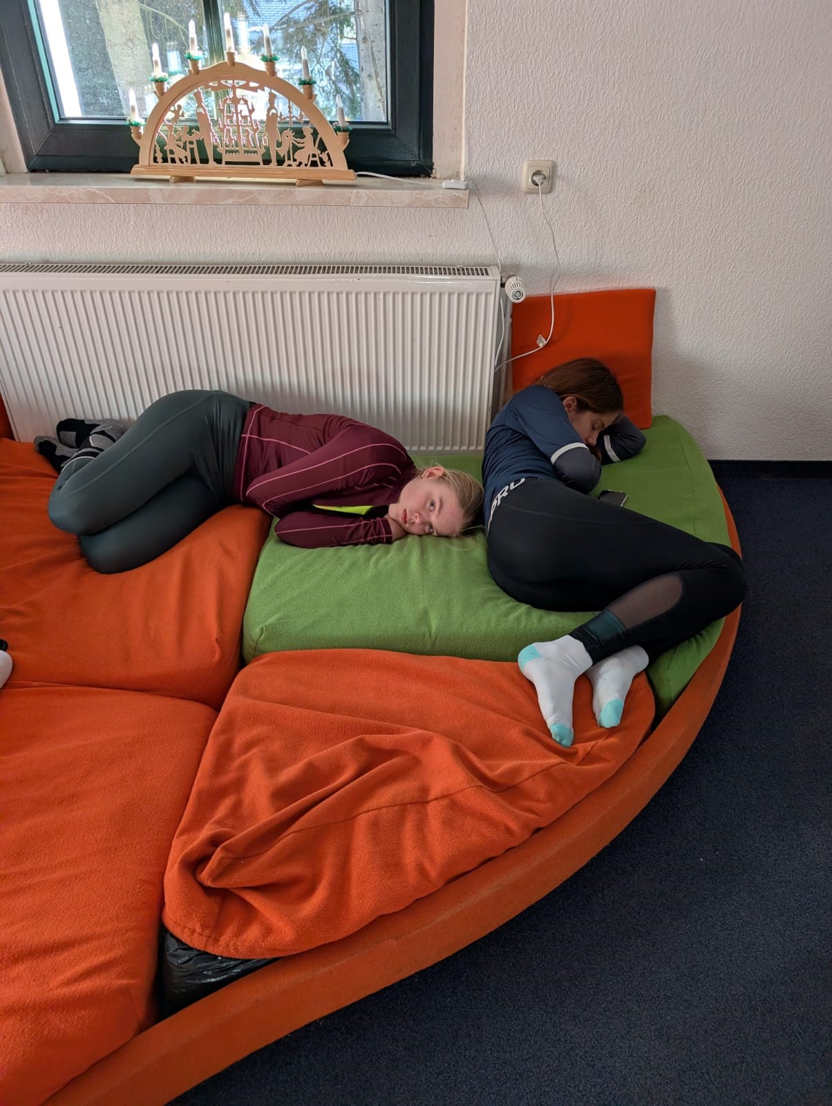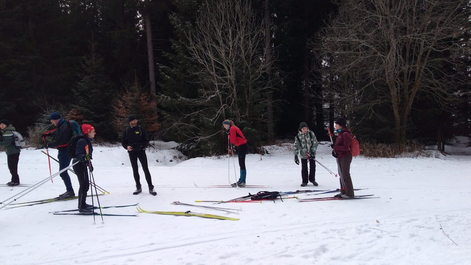 Johanngeorgenstadt. Die Eilenburger Kernbesatzung bestand in diesem Jahr aus Josi, Jasper, André, Rayk und den SportlerInnen Flavia, Luise, Niels und Clemens. Entscheidende Verstärkung kam mit Klaus aus Berlin, der Britta dabei hatte. In letzter Sekunde gesellte sich mit Robert, Carla, Georg und Klara noch eine ganze RCE-Familie dazu. Die gemütliche Jugendherberge in der Hospitalstraße erwies sich wieder einmal als perfekter Gastgeber. Der letztlich vorhandene Schnee lag schon ein paar Wochen auf den Loipen. Zwischendurch angetaut und nun überfroren, waren die Verhältnisse schwierig, aber halbwegs kontrollierbar. Man musste sich was einfallen lassen.