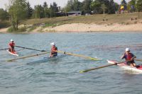 Ein Rudertrainingslager ist eine personalaufwändige Sache . Zwei Übungsleiter und zwei Motorbootfahrer mussten immer dabei sein. Auch die Verpflegung am Morgen und am Abend übernahmen die Eltern. Leider drangen in der Nacht zu Mittwoch dreiste Diebe in das Bootshausgelände ein und entwendeten viele Fahrräder und Fahrradteile. Eine schnelle Transporthilfe durch die Eltern ermöglichte eine Weiterführung des Trainingslagers. Vielen Dank an die Familien Palm, Korn, Kötter, Jung, L. Schulz, K. Winkler, S. Buschmann, S. Gans, D. Weinert, C. Röhr und V. Krause. Am Sonnabend fanden sich noch die Junioren zusammen, um in Leipzig auf dem Elsterflutbecken die zum ersten Mal dort ausgetragene Ruderbundesliga – ein Sprintrennen der Achter über 350m zu verfolgen.