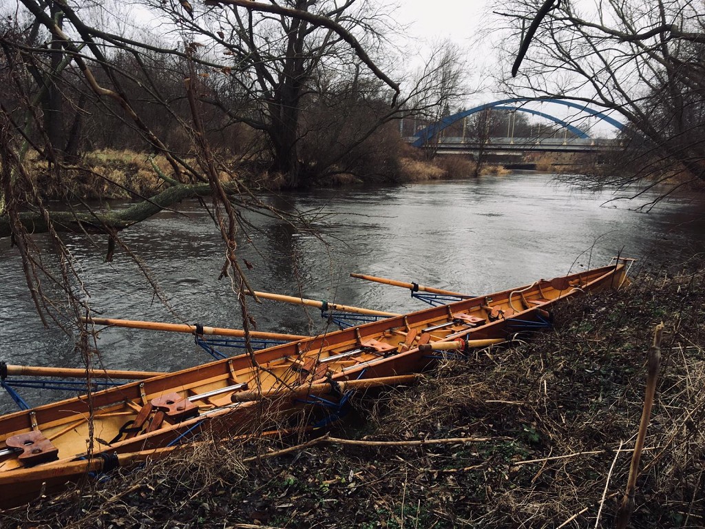 Die ersten Ruderschläge des neuen Jahres wurden von steifer Brise und amtlichem Nieselregen begleitet. Die Stimmung war dennoch hervorragend, der Mühlgraben füllig und die Eier hart gekocht. Sogar selbstgemachter Liquieur stand zur Verfügung.