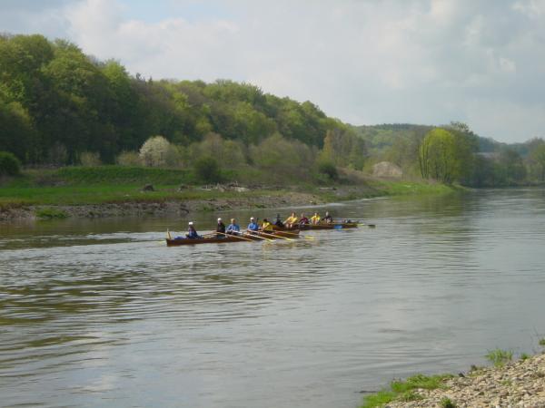 Da das Frühjahrshochwasser unserer geliebten Mühlgrabenausfahrt zum Anrudern leider nicht zuließ, wollten wir unbedingt zum Grün Donnerstag einen erneuten Versuch starten. Zunächst versprach die Wetterprognose einen sehr negativen Trend (5 °C und Regen, Tendenz kälter werdend). Doch Petrus hatte ein Einsehen und es wurden am Donnerstagnachmittag doch noch bei bedecktem Himmel 11°C und es hörte auch auf zu regnen. Gegen 18.00 Uhr fanden sich 10 Ruderwillige, die 2 Doppelvierer zügichst zu Wasser ließen und Flussaufwärts zur Eisenbahnbrücke ruderten. Durch den noch leicht erhöhten Wasserstand, zeigte diese eine sehr bedrohliche Strömung, und wir mussten doch einige Körner mehr lassen als sonst üblich. Zur Belohnung bot sich, aus dem hohen Pegelstand resultierend, eine sehr schöne Weitsicht in die gerade sich vom Winter erholende Auenlandschaft der Mulde. Dies quittierten alle Wasserwanderer durch eine hohe Ruderbreitschaft, so dass wir rasch ohne Pause an unserem alt bekannten Rastplatz ankamen. Behagliche Wärme spendete uns ein zünftiges Feuer, wobei sich die innere Wärme erst durch ein leckeren Kräuter, gepflegten Irish Whisky und durch ein zünftiges Endprodukt einer ortsnahen Brauerei einstellte. Während nun auch die Sonne am Horizont einen Weg zu uns fand, ließen wir noch den einen od. anderen Schwank aus der Vergangenheit aufleben. Um 19.45 Uhr ruderten wir wieder in leichter Dämmerung zum Heimathafen zurück. Die Boote waren schnell gewaschen. Unsere erlebten Eindrücke erzählten wir im Bootshaus am Tresen unseren nicht teilnehmenden Kameraden & Kameradinnen, in der Hoffnung sie für den nächsten Grün Donnerstag auch mit im Boot dabei zu haben. Hier die Teilnehmer: Torsten S, Felix, Thomas O, Sebastian Weisse, Robert, Andrea, Steffen S., Tilo P. Matthias und