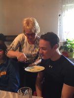 Nach einem leckeren Mittagessen (natürlich Nudeln mit Tomatensoße), geliefert von der Fleischerei Krause, gab es die Ansprache des Vorsitzenden Felix Weiske und die Siegerehrungen. Danach wurden die Vereinsmeister im Gig-Doppelvierer unter den 4 ausgelosten Mannschaften ermittelt. Hier gewann die Mannschaft mit Mathias Groth, Rayk Bremme-Jung, Christoph Krüger, Malte Jung und Steuerfrau Anna Buhle.